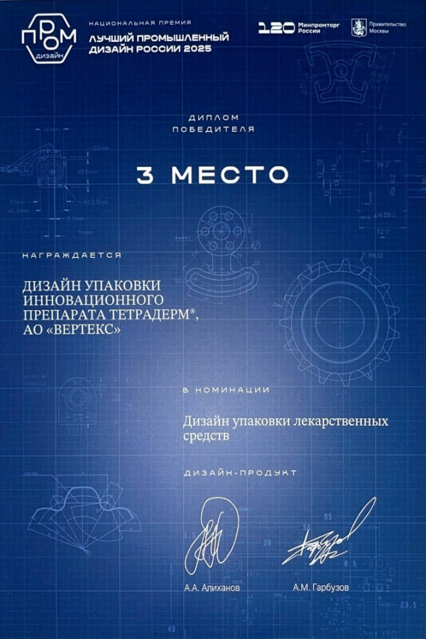 IQVIA Rx Awards 2021: "ВЕРТЕКС" занял 3 место по приросту (+30 %) в денежном выражении и стал единственным российским фармпроизводителем в топ-3 лидеров коммерческого рынка рецептурных лекарств РФ (1 полугодие 2021 г.)